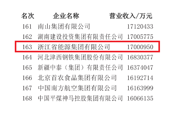 浙能集團(tuán)榮列“2024中國500強(qiáng)企業(yè)”第163位