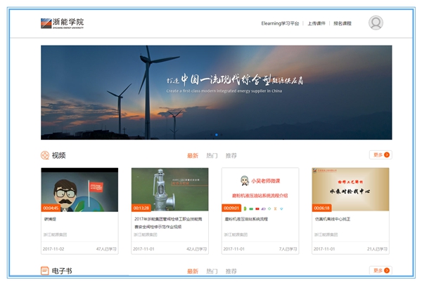 11月15日,浙能培訓(xùn)部推出E-learning升級版網(wǎng)絡(luò)學(xué)習(xí)平臺——浙能學(xué)院。新平臺加推多種新功能:視頻教學(xué),讓學(xué)習(xí)更加直觀可感;個性定制,一個屬于自己的學(xué)習(xí)成長空間;自拍上傳,分分鐘讓你成為技術(shù)導(dǎo)師;交流互動,隨時隨地碰撞思想的火花;手機客戶端,讓學(xué)習(xí)成為無處不在的習(xí)慣……