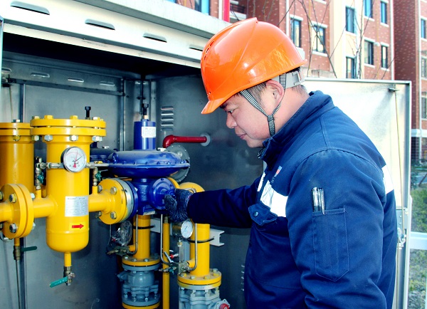 春節(jié)前夕,浙能城燃公司所屬海鹽天然氣公司巡線人員查看調(diào)壓柜情況。 姚瑜 攝