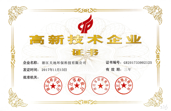 天地環(huán)保公司連續(xù)四次通過(guò)國(guó)家高新企業(yè)認(rèn)定