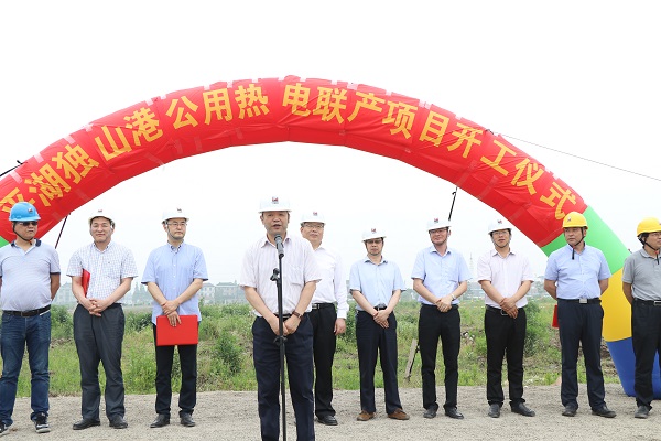 浙能集團副總經(jīng)理朱松強、科服分公司總經(jīng)理華國鈞、集團建設部副主任潘華林、興源節(jié)能公司董事長王靜毅、電建公司董事長楊志明,平湖市、獨山港鎮(zhèn)及各相關單位負責人參加了項目開工儀式。