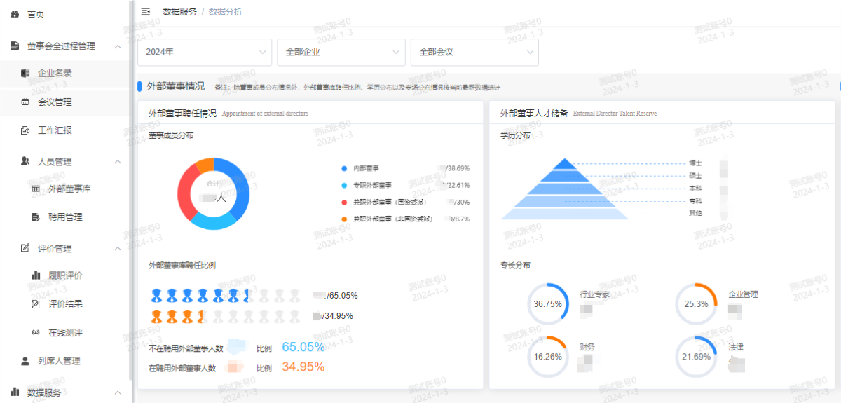 董事會運(yùn)行管理系統(tǒng)按省國資委管理要求研發(fā)部署,依據(jù)國資監(jiān)管機(jī)構(gòu)要求與企業(yè)章程,結(jié)合企業(yè)發(fā)展戰(zhàn)略和業(yè)務(wù)特點(diǎn),形成外部董事多維度畫像,深化預(yù)警提醒,前移監(jiān)督關(guān)口,可視化呈現(xiàn)各企業(yè)董事會建設(shè)、外部董事人才儲備等情況,實現(xiàn)預(yù)警在先、監(jiān)督有形,助力董事會規(guī)范性建設(shè)更高效、更智能。截至2023年底,董事會運(yùn)行管理系統(tǒng)已覆蓋省國資委及16家省屬企業(yè),累計錄入千余條會議數(shù)據(jù)與相關(guān)董事會議題數(shù)據(jù),以及百余條外部董事履職數(shù)據(jù),兼職外部董事庫中擁有百余位人才儲備。系統(tǒng)從使用便捷性、數(shù)據(jù)準(zhǔn)確性和數(shù)據(jù)實用性三方面著手,打造“好用、實用、管用”的董事會運(yùn)行管理數(shù)字化應(yīng)用。