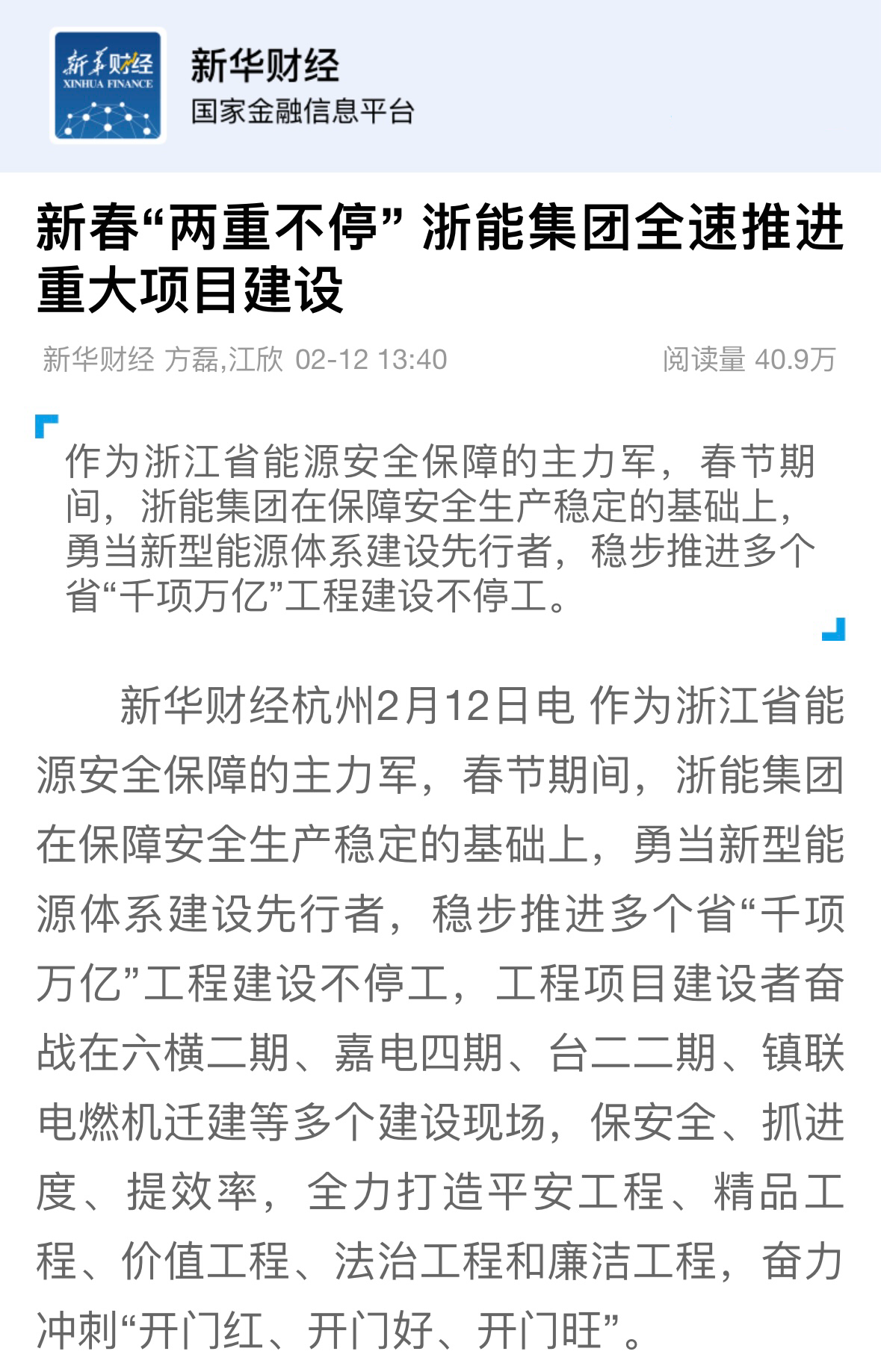 新華社新華財經(jīng)報道《浙能集團(tuán)推進(jìn)“千項(xiàng)萬億”工程建設(shè)不停工》。 新華財經(jīng) 圖