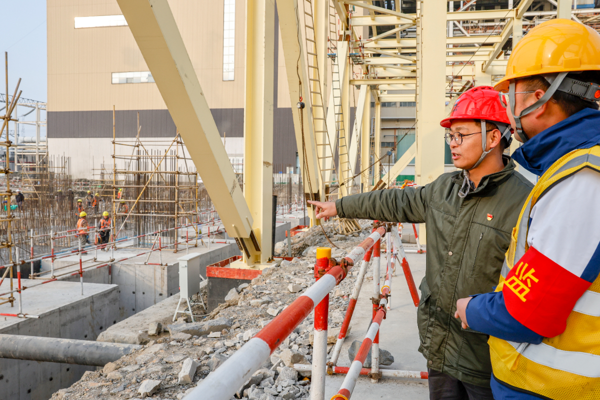 2月10日大年初一,在浙能嘉電四期擴(kuò)建項(xiàng)目工地上,建設(shè)單位、監(jiān)理等各方人員仍按照排值班計劃準(zhǔn)時到崗到位,多臺塔吊和吊機(jī)配合,將施工材料精準(zhǔn)放置工地各處,隨處可見工人忙碌的身影。“春節(jié)前天氣情況不好,雨水較多,不利于現(xiàn)場施工,趁著現(xiàn)在天氣晴好,大家分秒必爭,節(jié)假日期間每天有300多人駐守作業(yè),工程部、質(zhì)安部‘1+4’模式全天候、多專業(yè)協(xié)同管理,確保各個作業(yè)區(qū)井然有序?!睋?jù)嘉電四期工程部主任方亮介紹,自9號機(jī)組鍋爐房首根鋼結(jié)構(gòu)吊裝就位以來,工程施工現(xiàn)場全體建設(shè)人員保持高漲的工作激情,機(jī)組建設(shè)按節(jié)點(diǎn)計劃推進(jìn),鍋爐房首層鋼結(jié)構(gòu)吊裝進(jìn)展達(dá)預(yù)期,出線門架樁基、循環(huán)水虹吸井及管道、主廠房基礎(chǔ)、電除塵基礎(chǔ)等同步施工。